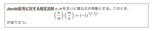 Jacobi記号について簡潔にまとめます。Legendre記号、平方剰余の相互法則についてはintegers.hatenablog.comをご覧ください。定義 を正の奇数とし、をと互いに素な整数とする。このとき、Jacobi記号 を次のように定義する: まず、とし、とが素因数分解され…