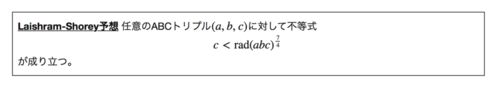 ABC予想について述べた記事integers.hatenablog.comにおいて「強い予想」として次を述べていました:予想 任意のABCトリプルに対して不等式が成り立つ。この予想は A. Granville, T. J. Tucker, "It’s as easy as abc", Notices of the AMS, 49 (2002), 1224…